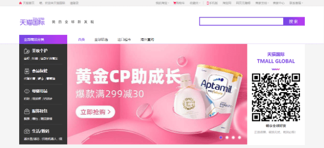 中国国内向けの天猫(Tmall)と、越境ECモールの天猫国際(Tmall Global)があります。