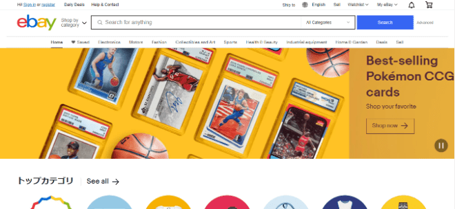 また、オークション形式で知られるeBayは中古品販売にも強みがあります。