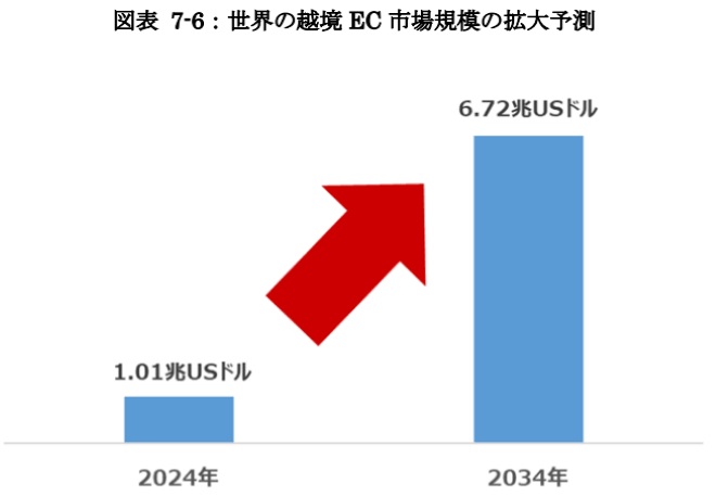 世界の越境ECの市場規模は、2034年には6兆7,200億USドルにまで成長する見込みです。